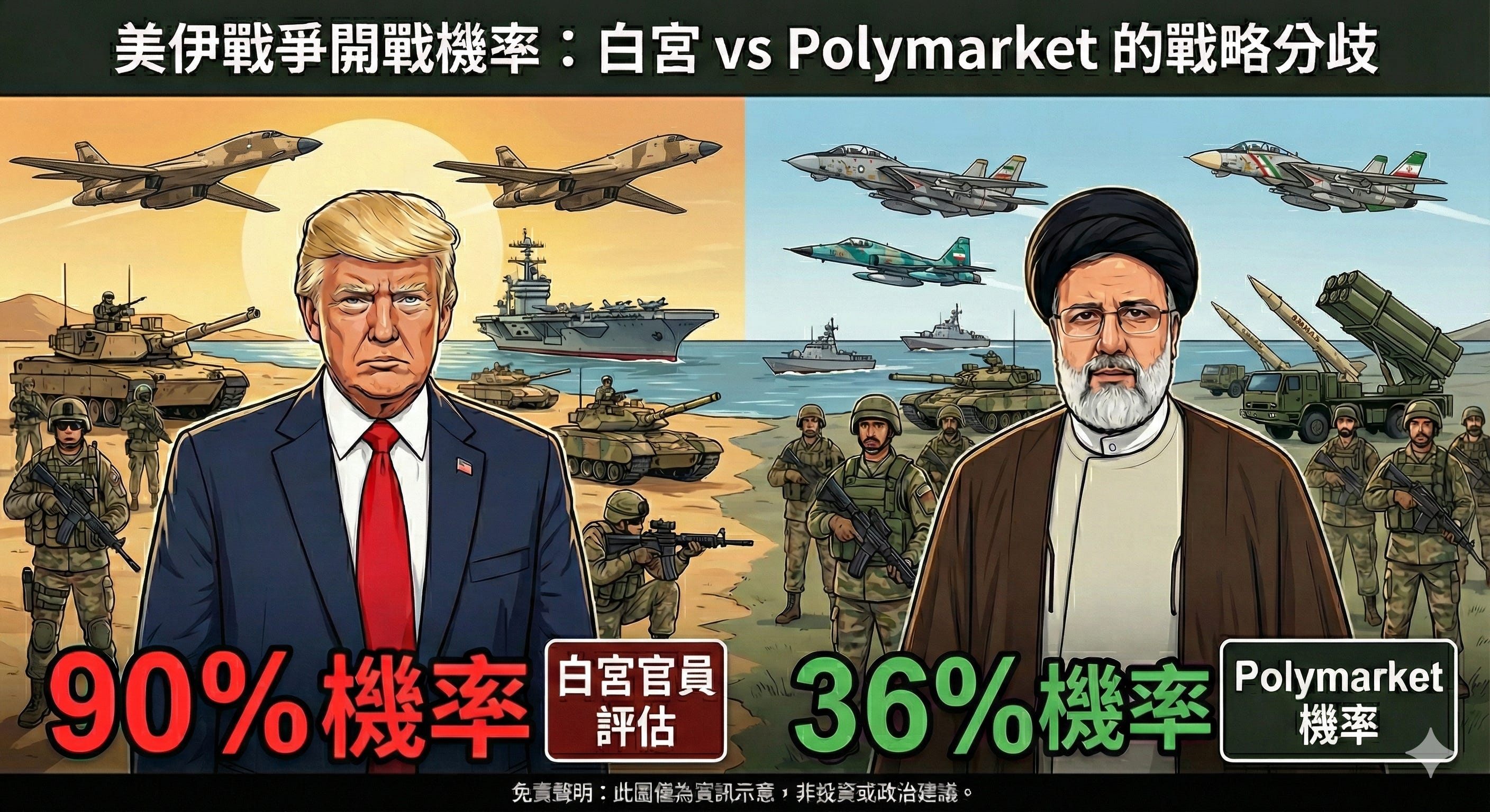 如果你真的要打,你不會提前告訴記者。去年 Midnight Hammer 打完了全世界才知道,最近的委内瑞拉也是幾個小時的閃電戰。公開說 90% 的目的是讓伊朗在談判桌上讓步,不是預告行動。真正要動手的時候,消息源會沉默,不會更大聲。